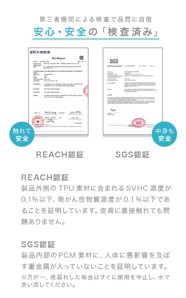 NASAで研究開発された国際基準の冷却素材「PCM」素材を採用。