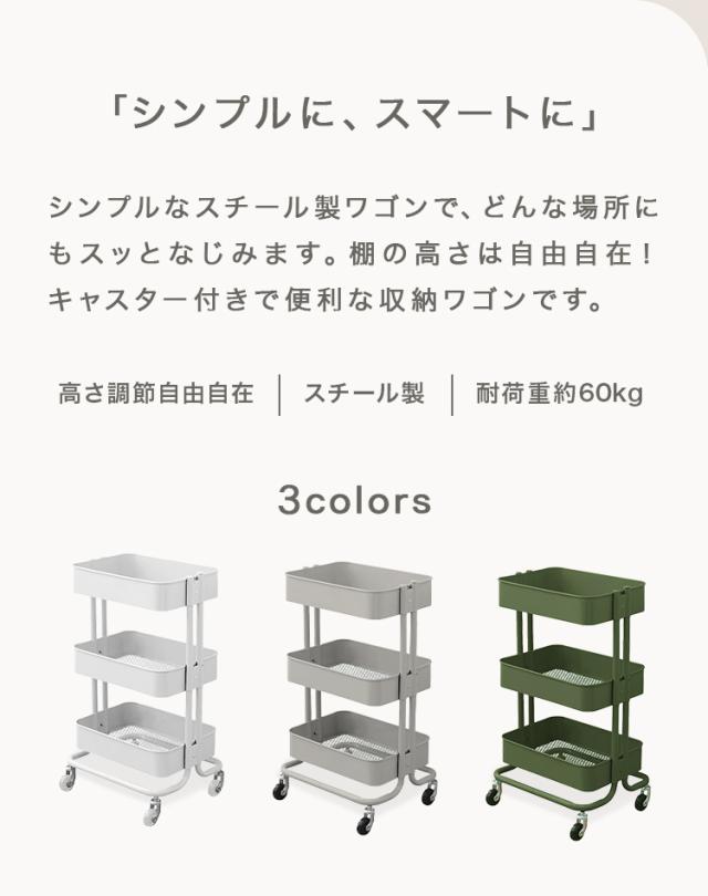 ワゴン キッチンワゴン 3段 高さが変えられる ラックもスチール製 高品質 くすみカラー おしゃれ バスケットトローリー キャスター付き 耐荷重60kg キッチンラック スチールラック おもちゃ 収納 オムツ ベビーワゴン キッチン ランドセル 炊飯器 北欧 美容室