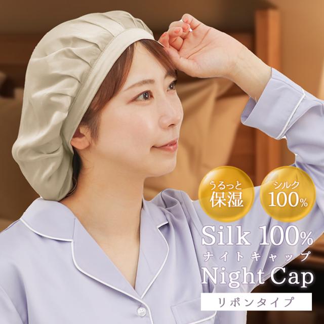 ナイトキャップ シルク100% リボンタイプ ロングヘア シルクキャップ 高級 シルク 髪 ロング 就寝用 ヘアケア 潤う Silk 摩擦レス 保湿 さらさらヘア うる艶 さら艶 おすすめ 美髪 美容 ダメージケア ルームキャップ 就寝用帽子 ショート セミロング 送料無料