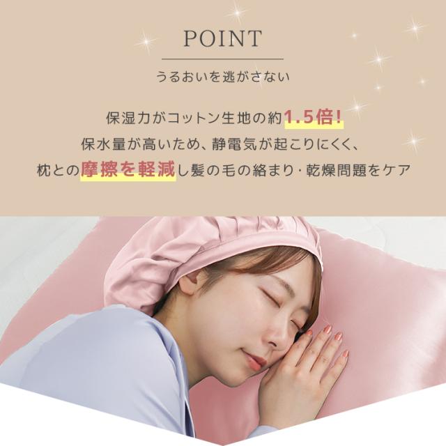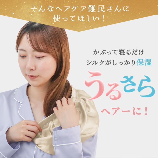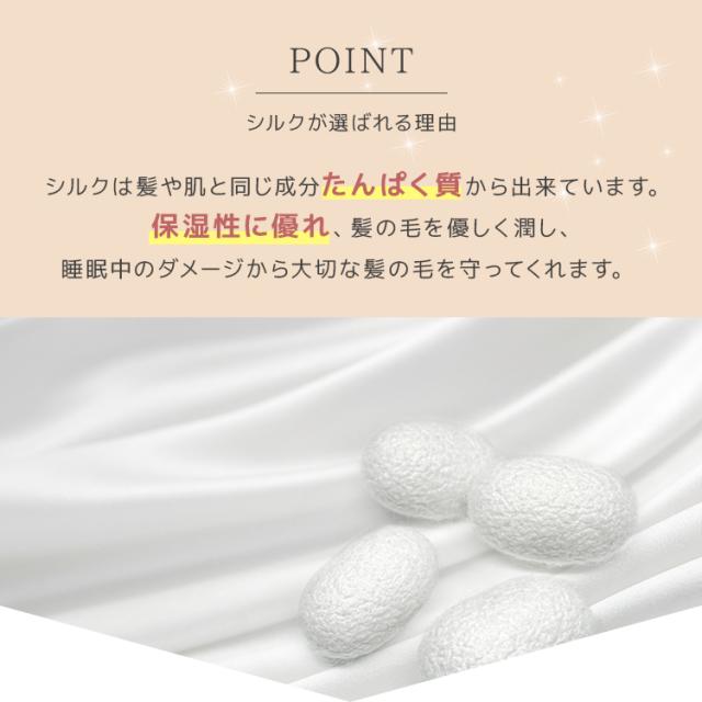 シルク100%だから生地の摩擦による静電気が起きにくく、枝毛、切れ毛などの髪ダメージを抑制してくれます。