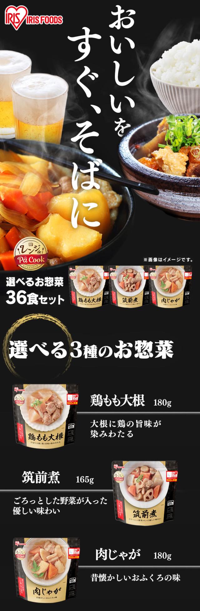 【同種36食セット】レンジアップ 鶏もも大根 筑前煮 肉じゃが 全3種類 賞味期限1年 そうざい 惣菜 レンジ調理 簡単 レンチン レンジでチン電子レンジ レトルト パウチ レトルト食品 保存食 鶏もも大根 筑前煮 肉じゃが 常温保存 アイリスオーヤマ 送料無料
