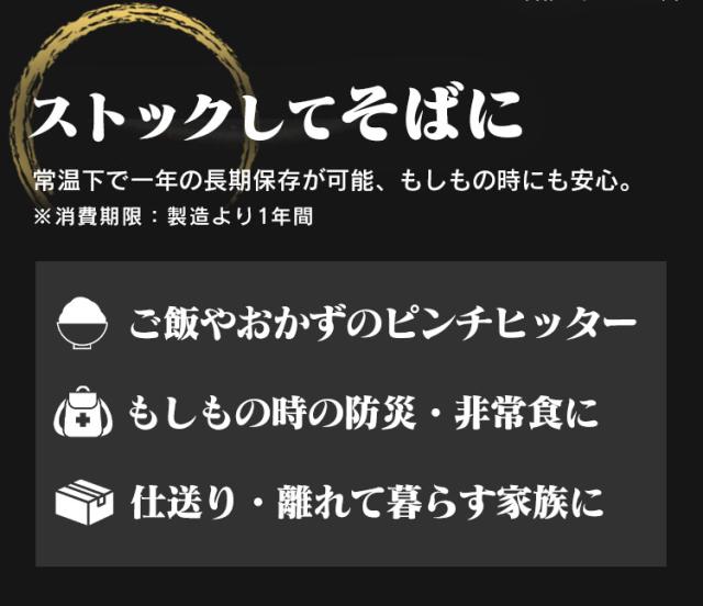 また、賞味期限が1年あるので、長期保存にも向いています。
