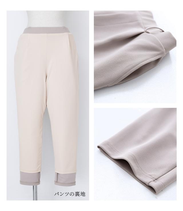【送料無料】『ノーカラージャケット&パンツセットアップ』【メール便不可】【30】[セットアップ レディース ジャケット 長袖 羽織 ノーカラー ボトムス テーパードパンツ ロング丈 オケージョン]