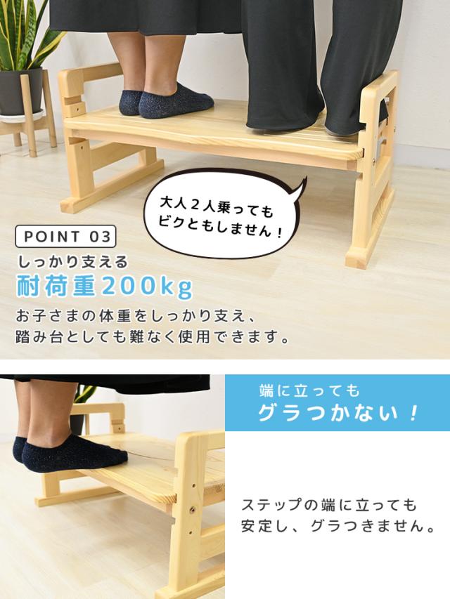 耐荷重は安心の約200kg。お子様はもちろん、大人の方の踏み台としての利用も可能です。