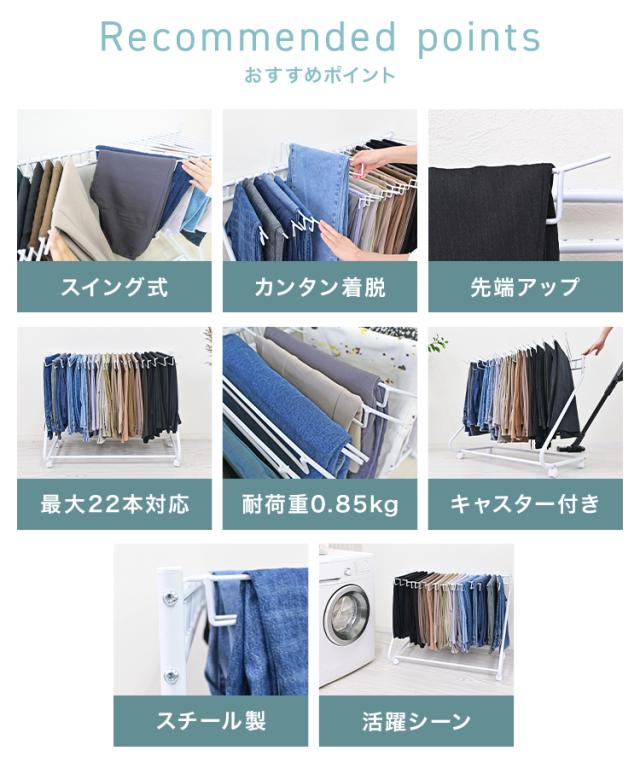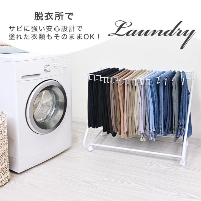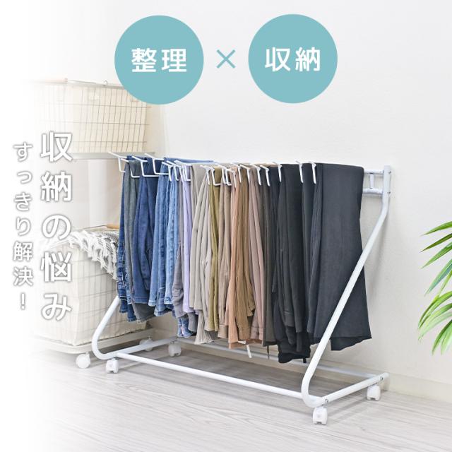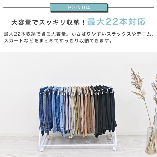 スラックスハンガー 大容量 ハンガー 22本掛け ラック キャスター付き ハンガーラック 収納 パンツラック ズボンハンガー おしゃれ 押入れ収納 衣類収納 コンパクト タオル掛け 物干し パンツ ボトムス スリム 衣替え 押入れ クローゼット 送料無料