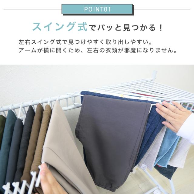 スイング式なので、隣の衣服が邪魔にならず取り出しできます!
