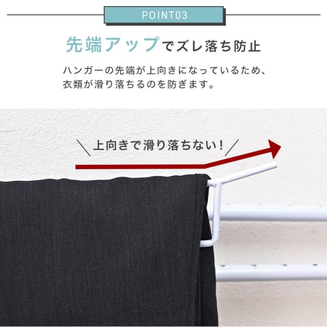 ハンガーの先端が上向きになっているため、滑り落ちを防ぎます!