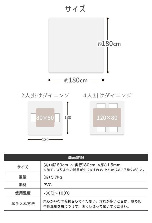 | サイズ | (約)180cm×180cm(厚さ1.5mm) |