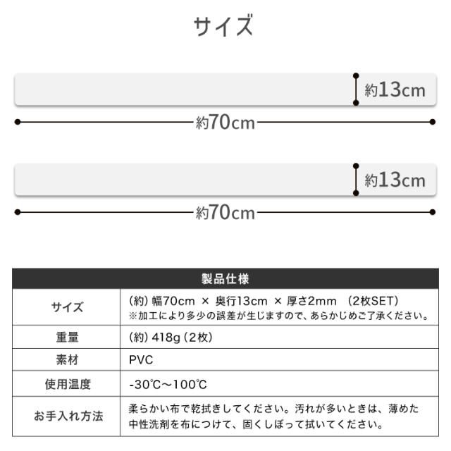 冷蔵庫マット 透明 クリア 70×13cm 2枚入 スリム 傷防止マット 床保護シート 冷蔵庫 〜300L 〜500L 〜600L 下敷き PVCマット クリアマット 透明マット キッチンマット 洗濯機マット フローリング 床 保護マット 床暖房対応 送料無料