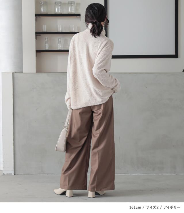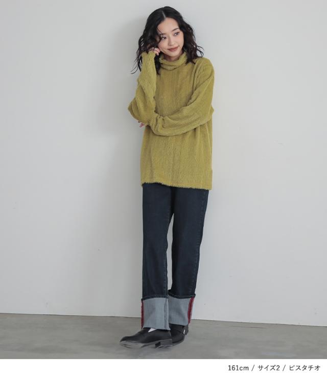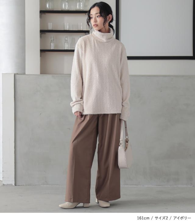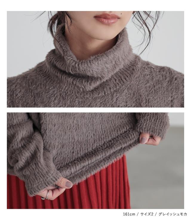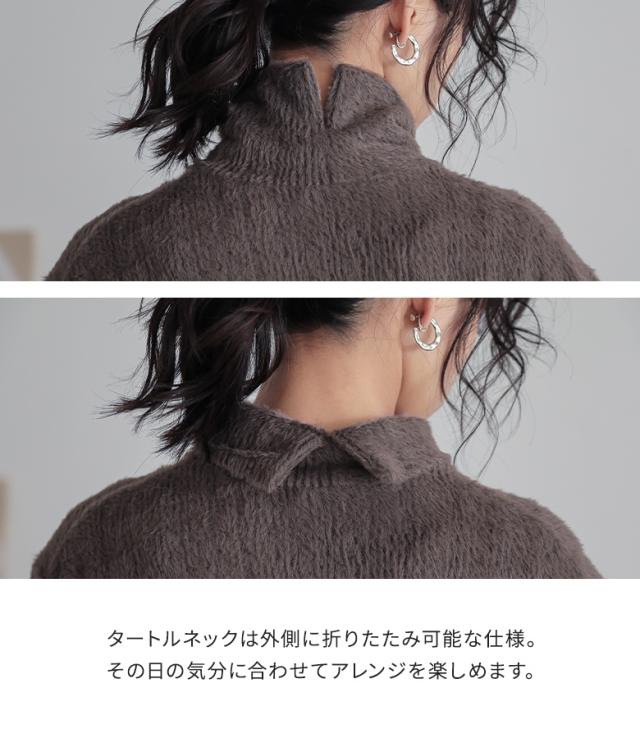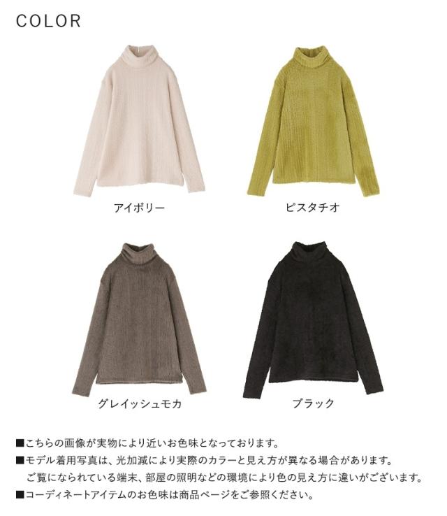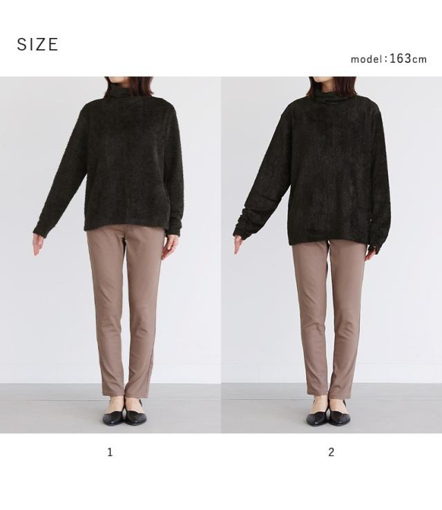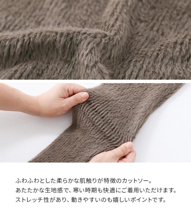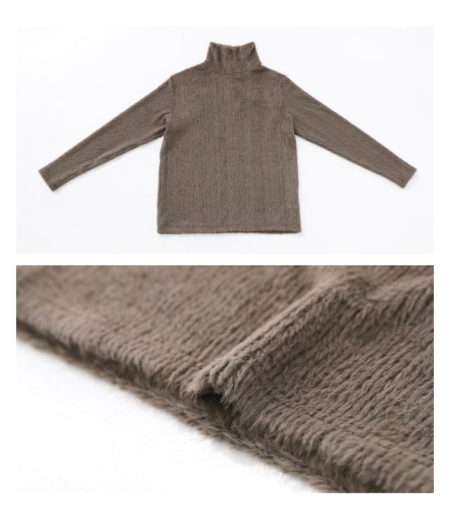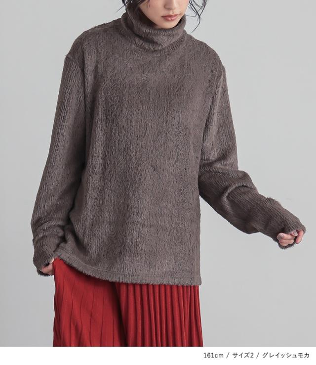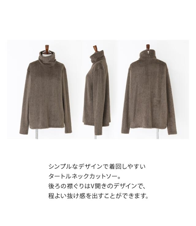 『シャギータートルネックカットソー』【メール便不可】【20】 [カットソー 長袖 レディース トップス タートルネック シャギー リブ ふわふわ あったか 防寒 ロンT インナー ストレッチ]