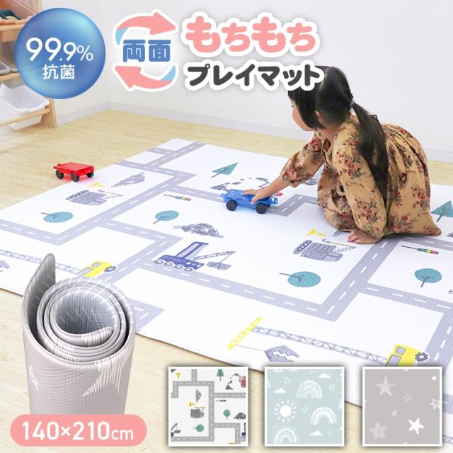 プレイマット 140×210 抗菌 もちもち ロール式 リバーシブル フロアマット PVC シームレス クッションマット 赤ちゃん ベビー 子ども 子供 キッズ リビング ジョイントマット キッズマット お昼寝 厚手 防水 マット 大判 防音 お昼寝