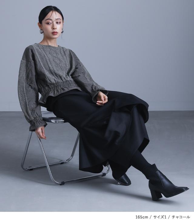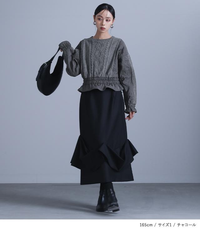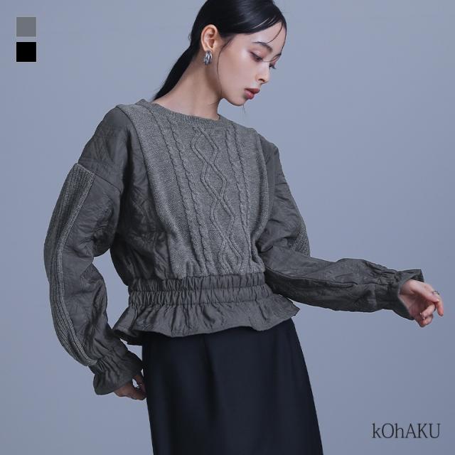 トップス ニット 長袖 レディース ケーブル編み キルティング 幾何学模様 モード あったかい 暖かい 冬 【TP】 ニット・セーター セーター クルーネック Uネック ショート丈ニット ショート丈 ミディ丈 ミドル丈 クロップド丈 切り替え 幾何学柄 無地 おうちで洗える 防寒 あったか 秋 カジュアル フェミニン 大人女子 大人可愛い お洒落可愛い 大人カジュアル オフィスカジュアル 上品 きれいめ ラフ かっこいい Sサイズ Mサイズ Lサイズ LLサイズ 3Lサイズ 10代 20代 30代 40代 50代 60代 低身長 高身長 女子会 オフィス 通勤 通学 お買い物 お出掛け 旅行 おしゃれ お洒落 トレンド 流行 kOhAKU コハク スタイリッシュ 洗練 エッジィ osharewalker オシャレウォーカー おしゃれうぉーかー グレー 灰色 チャコール ブラック 黒[ID]14tm0q1