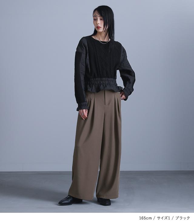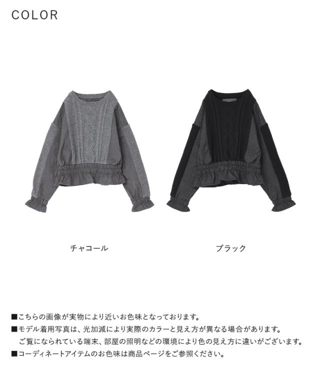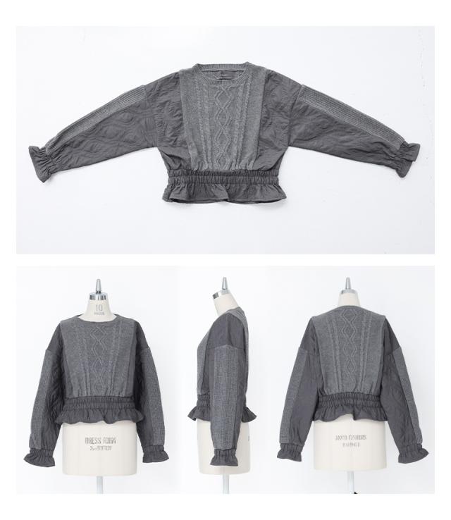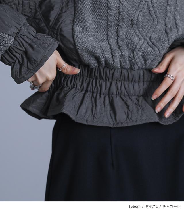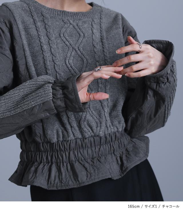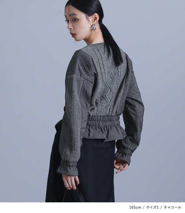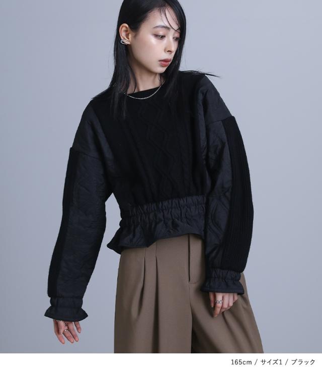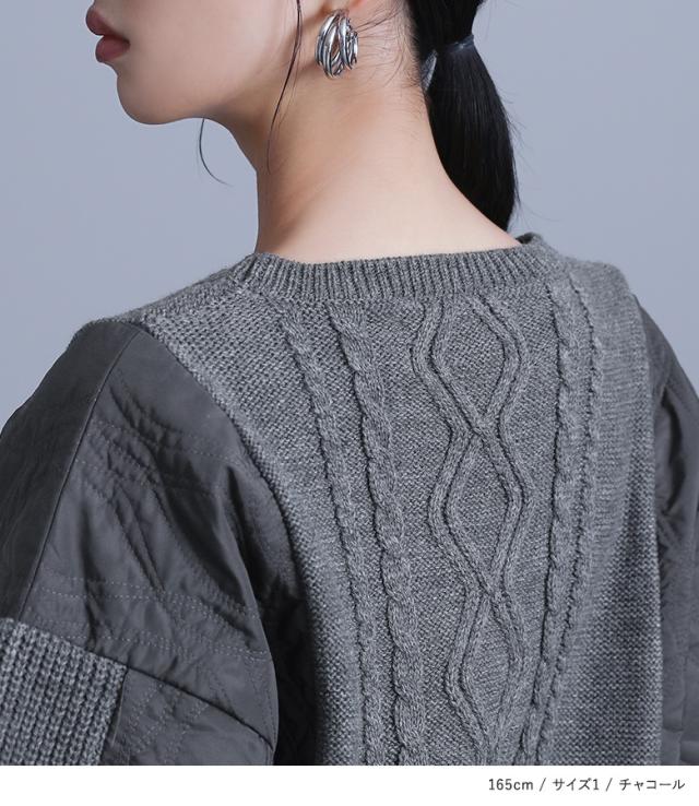 【送料無料】『キルティング切替トップス』【メール便不可】【40】 [トップス ニット 長袖 レディース ケーブル編み キルティング 幾何学模様 モード あったかい 暖かい 冬 カジュアル]