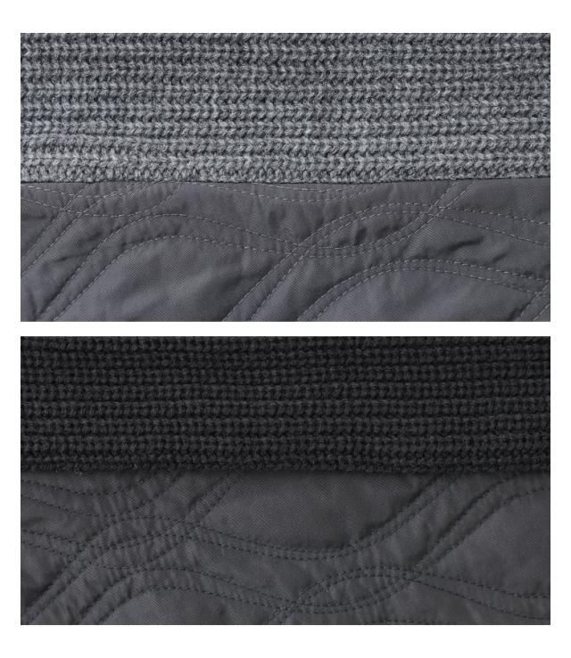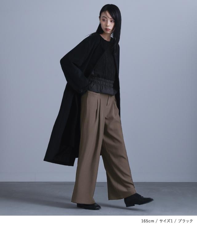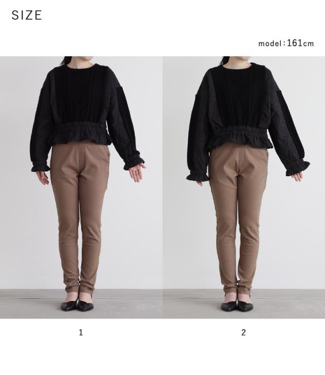 ■デザイン 幾何学模様のケーブル編みニットと、ランダムなヘチマ柄のキルティング生地をドッキングしたトップス。ウエストと袖口を絞ったメリハリのあるシルエットが、女性らしく個性的な印象に導きます。落ち着いた色使いで合わせやすくも、異素材とこだわりのシルエットで遊んだモードな一着です。 ■コーディネート シンプルなワイドパンツやスカートを合わせるのがおすすめ。程よくコンパクトな丈感ながらゆるっと着られて、ボトムスとのバランスを取りやすいのが特徴です。足元はブーツやローファーはもちろん、スニーカーでスポーツミックスを楽しむのもおすすめです。 ■素材 ニット部分は柔らかく心地よい肌触りで、キルティング部分と馴染む厚みの素材感。キルティング生地は表面感があり、肌寒い季節でも暖かい程よい厚みで、一枚着るだけで旬のお洒落を楽しめます。 ■製品についての注意書き ニット製品につきまして。 ニット素材の持つ特性として編み上げる行程やプレス仕上げによって多少サイズや風合いの個体差が生じる場合がございます。 着用した時と実寸の長さが変わる可能性がございます。 また、着用の際ピリングが避けられず、完全に防止することはできません。毛玉取り器等で丁寧に取り除いてください。 ローゲージニットにつきまして。 やわらかな糸を合わせて編むことにより、独特のざっくりした風合いを出しております。製品の特性上、ざらついたものに引っかかりやすく糸が飛び出すことがございます。 ご了承の上、ご購入いただきますようお願いいたします。 |