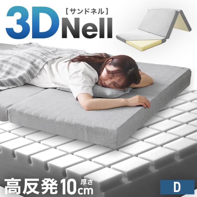 マットレス ダブル 三つ折り 3Dキューブ セル 高反発 10cm 3DNell サンドネル 3層構造 200N 30D 極厚 体圧分散 腰痛 改善 高反発マットレス 折り畳み 折りたたみ 敷き布団 敷布団 高反発マット マット 折りたたみ 凹凸 布団 敷き布団 敷布団 寝具 新生活 D 送料無料