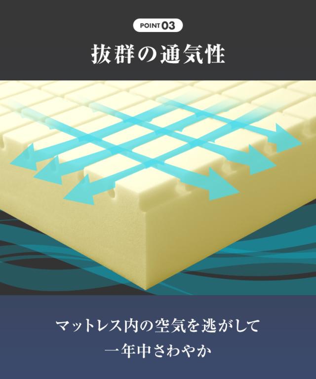 姿勢に合わせて3Dキューブが体圧を分散し身体をしっかり支える高反発マットレスです。