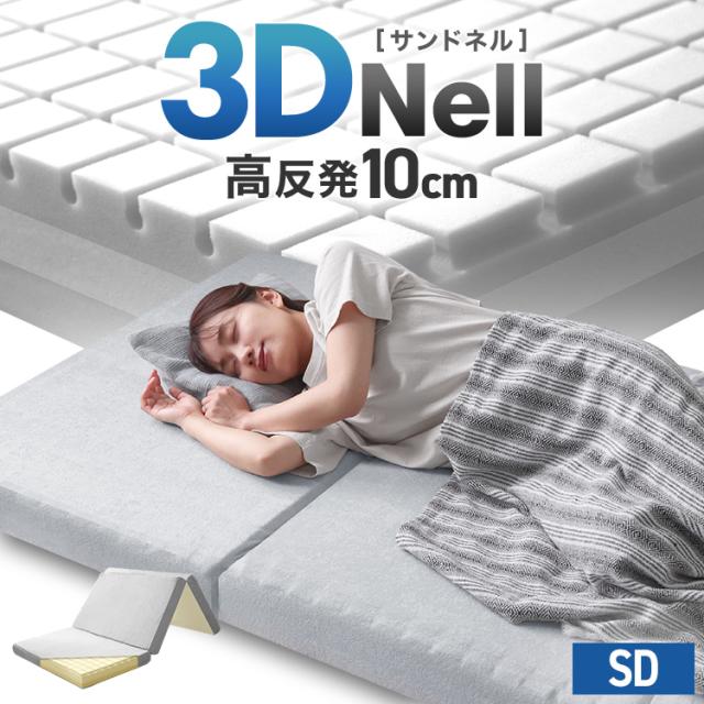 マットレス 三つ折り セミダブル 高反発 10cm 3DNell サンドネル 3層構造 低反発 選べる硬さ 3Dキューブ セル 200N 30D 85N 40D 極厚 体圧分散 腰痛 改善 低反発マットレス 高反発マットレス 折り畳み マット ベッド 折りたたみ 敷き布団 敷布団 寝具 新生活 SD 送料無料