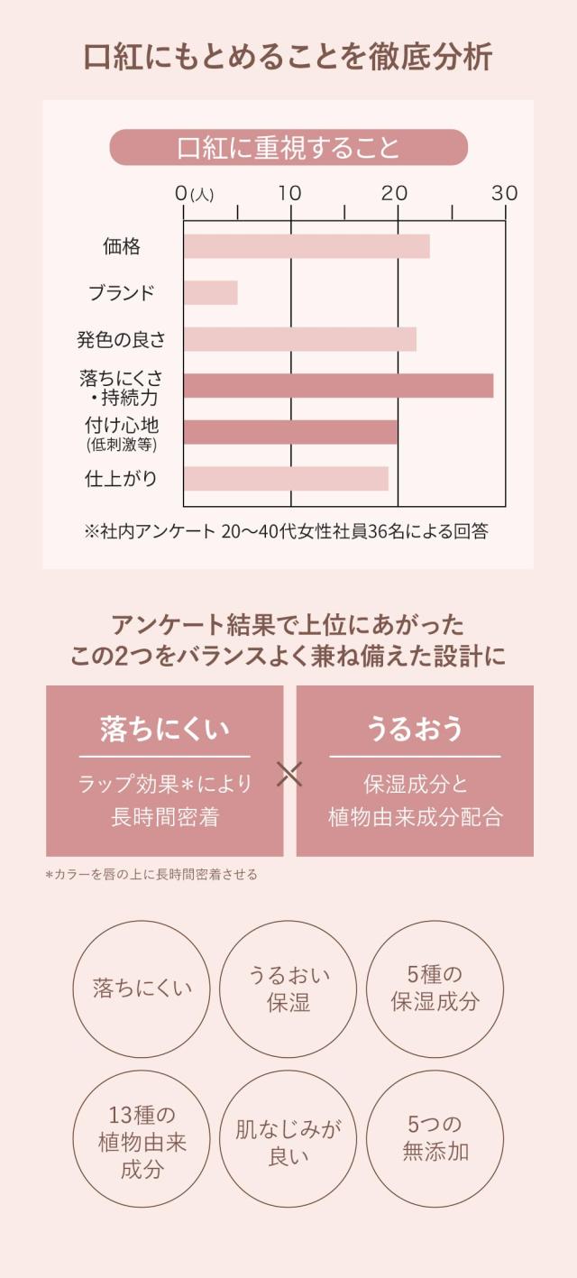 16種類の植物由来原料を使用したナチュラル志向の方向けのリップ、口紅。