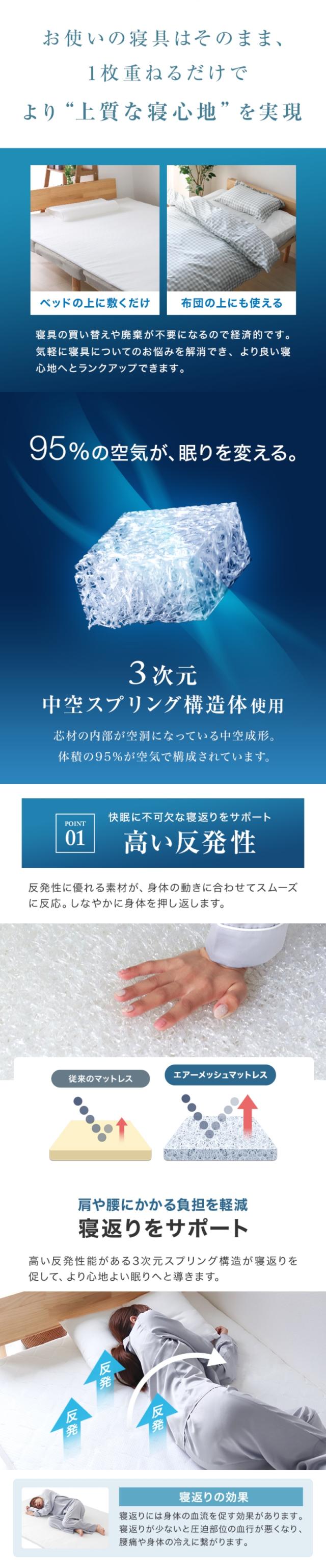 【空気を編み込んだ】 マットレス セミダブル マットレストッパー 厚さ2cm メッシュ 3D立体構造 通気性 洗える 高反発 敷布団 敷き布団 エアー 空気 マット 高反発 睡眠改善 腰痛 硬め 軽量 高反発マットレス リバーシブル トッパー ベッドマット 新生活 SD