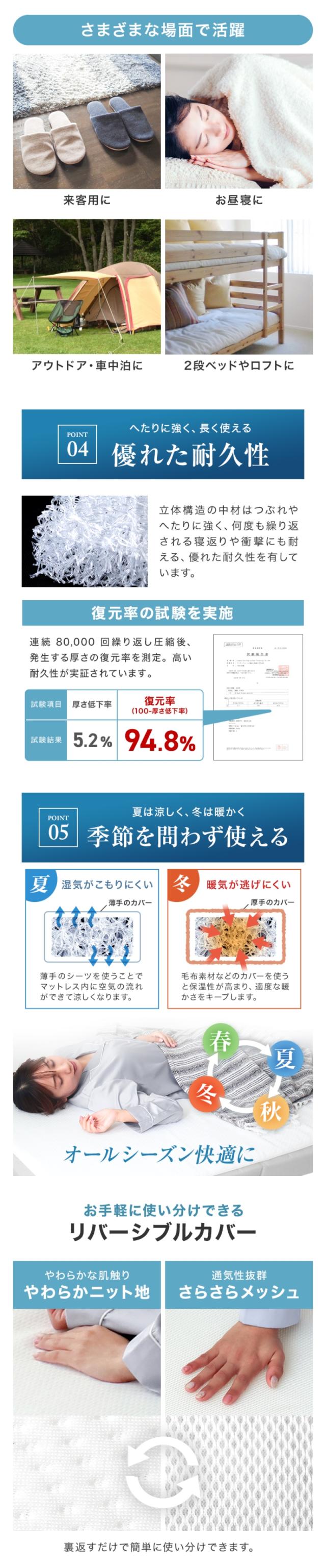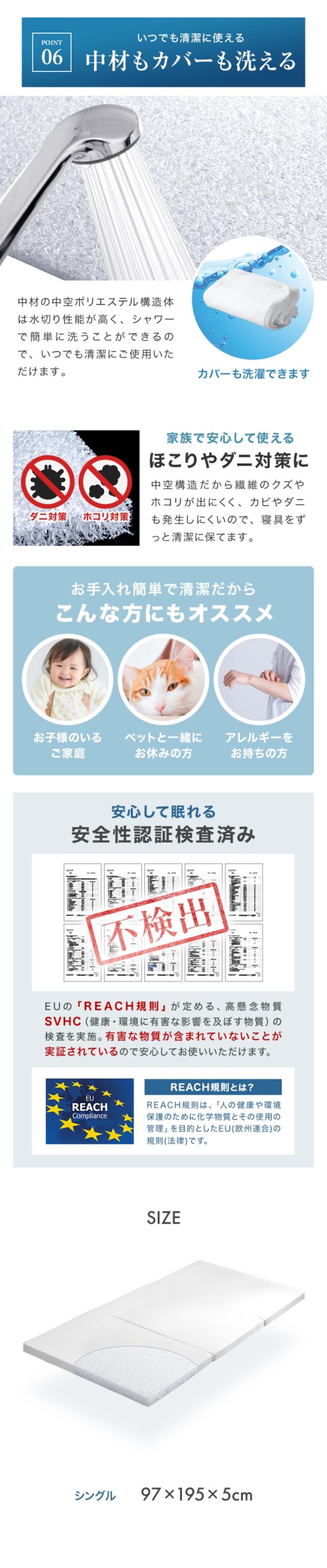 | 使用時サイズ | 【シングル】約幅97×長さ195×厚さ5cm |
