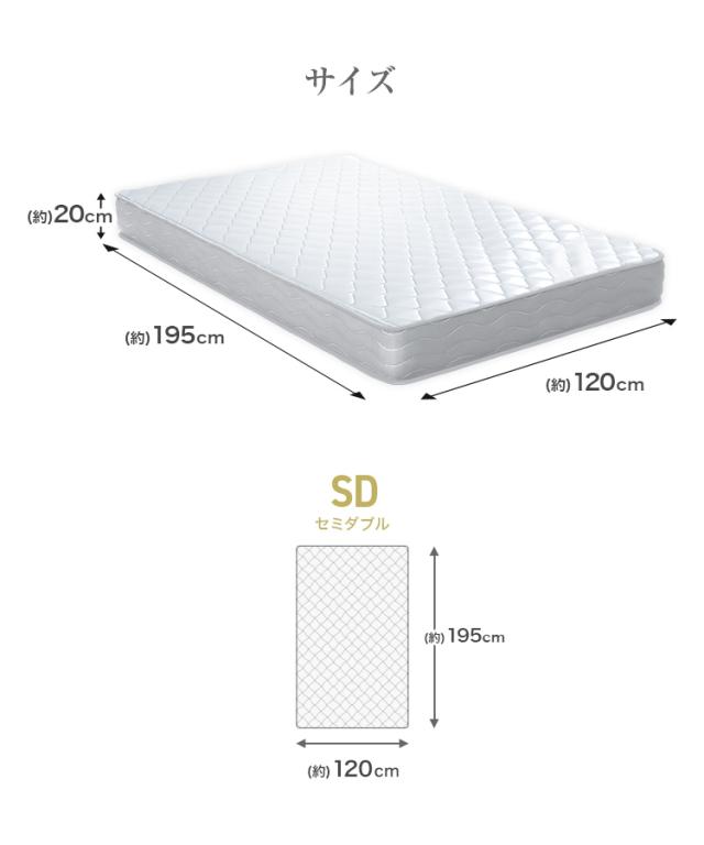 | サイズ | セミダブル:(約)幅120cm×長さ195cm×厚み20cm (エッジ部17cm) |
