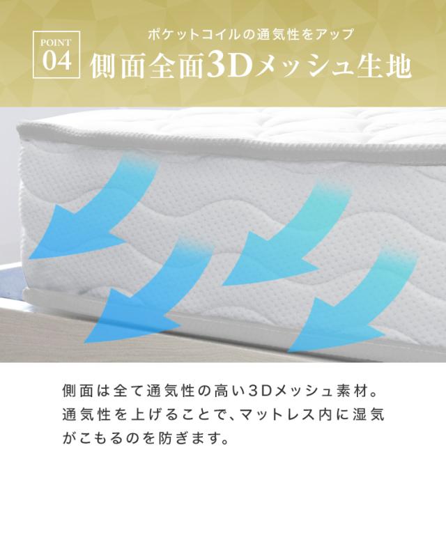 マットレス ダブル ポケットコイル エッジサポート 極厚20cm 3Dメッシュ キルティング 高密度 25D コイル 快眠 腰痛 寝返りしやすい マット コンパクト ベッド 高反発 敷き布団 寝具 体圧分散 圧縮 ポケットコイルマットレス 寝具 新生活 送料無料