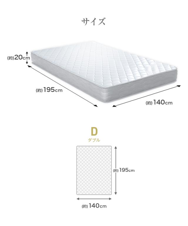 | サイズ | ダブル:(約)幅140cm×長さ195cm×厚み20cm (エッジ部17cm) |
