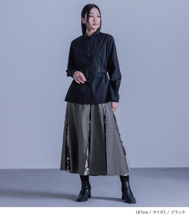 『ブザムシャツ』※メール便可※【10】[シャツ レディース トップス ブラウス 長袖 ベルト シルバー金具 ロングシーズン ウエストシェイプ シャツ生地 オケージョン オシャレウォーカー]