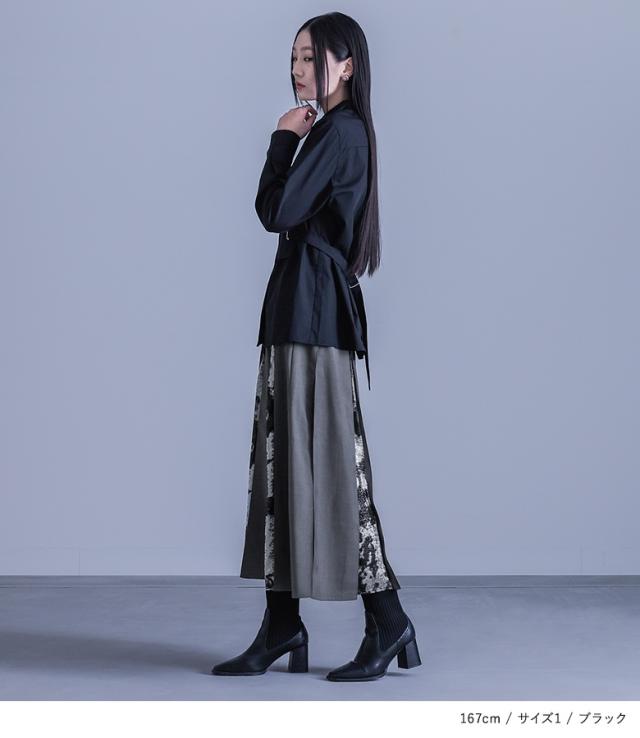 ■デザイン 胸元のデザインが特徴的なブザムを重ねた、洗練されたデザインのシャツ。シルバーの金具を使用し、バックのDカンベルトでウエストシェイプも可能なデザインです。ベルトループが付いているのですっきりと着られ、垂らしたままで着ても後ろ姿のポイントになります。 ■コーディネート シンプルなのでどんなスタイルにも合わせやすいデザイン。柄ものやデザイン性のあるボトムスと合わせてモードやカジュアル寄りに。シンプルなアイテムやジャケットなどと合わせて洗練された印象に仕立てます。普段使いはもちろん、オケージョンシーンにも活躍する一枚です。 ■素材 さらりとした肌触りで着心地の良い、綿混のシャツ生地。デザインに合わせて程良いハリ感があり、綺麗めな印象の素材感です。ロングシーズンでご着用いただけます。 |