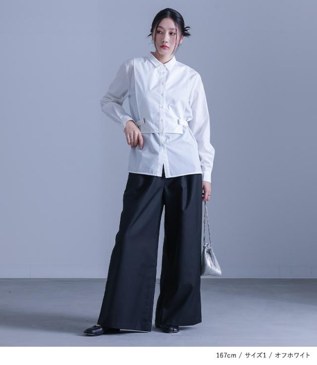 シャツ レディース トップス ブラウス 長袖 ベルト 【TP】 ボタンシャツ 前開きシャツ ホワイト 白 オフホワイト 春 秋 冬 カジュアル モード キレカジ オフィス・ビジネス お尻が隠れる 二の腕カバー Sサイズ Mサイズ Lサイズ LLサイズ 3Lサイズ XLサイズ 10代 20代 30代 40代 50代 60代 低身長 高身長 女子会 オフィス 通勤 通学 お買い物 お出掛け 旅行 リゾート レジャー おしゃれ お洒落 トレンド 流行 パーティー 二次会 結婚式 入学式 卒業式 フォーマル オケージョン セレモニー 謝恩会 学校行事 お宮参り 七五三 ママ 母 母親 ママスーツ kOhAKU コハク 大人女子 大人可愛い お洒落可愛い 大人カジュアル ラフ スタイリッシュ 洗練 エッジィ 上品 きれいめ かっこいい osharewalker オシャレウォーカー おしゃれうぉーかー ベルトルーフ Dカンベルト ブザム オケージョンシーン ブラック 黒[ID]11tn057