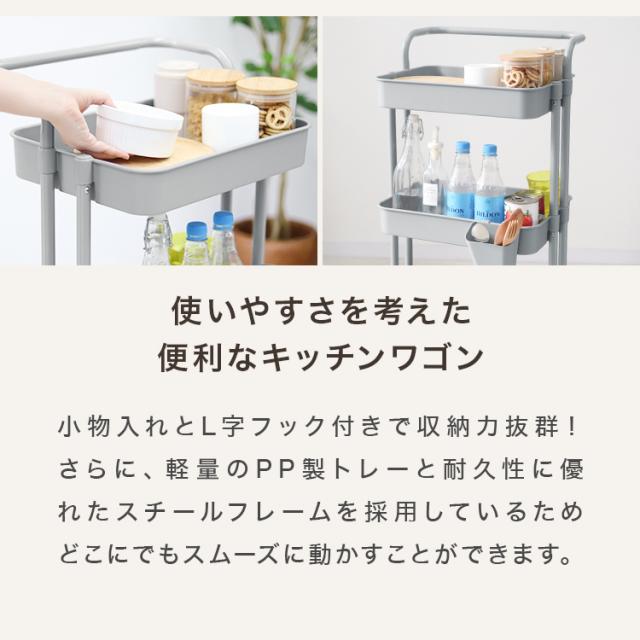 【小物入れ&L字フック付き】 キッチンワゴン キャスター付き ワゴン キッチンワゴン スリム 2段 3段 高さ調節 取っ手付き ハンドル キッチン収納 キッチン 作業台 バスケットトローリー ベビーワゴン キッチンラック スリム おしゃれ 収納ラック 送料無料