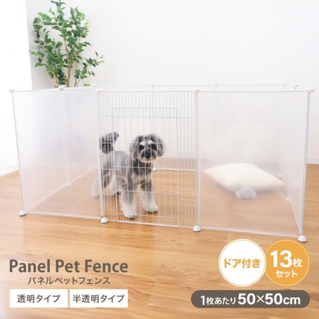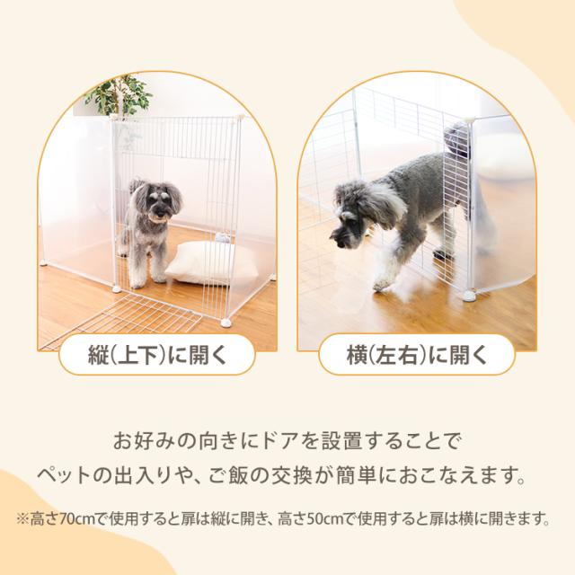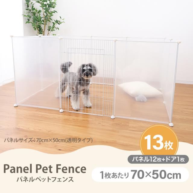 ペットフェンス 柵 70×50cm 12枚セット ペットケージ ドア付 パネル ペットサークル ペットケージ ケージ パネルペットサークル ゲージ サークル トレーニングサークル 犬用ケージ 透明 半透明 中型犬 猫 屋内用 室内用 犬小屋 ペット ペット用品 送料無料