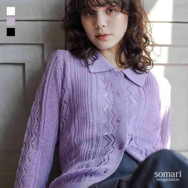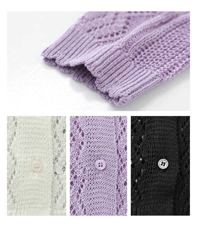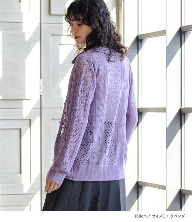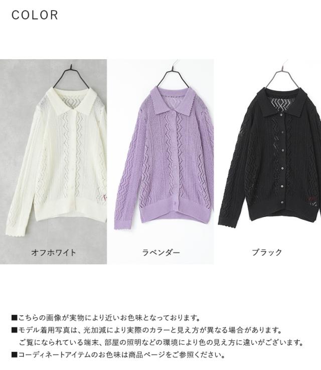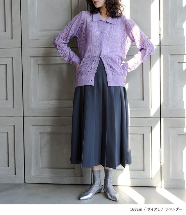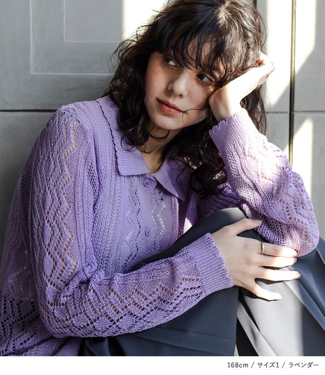 カーディガン レディース トップス ニット 長袖 透かし編み 羽織 襟付き サマーニット 透け感 ニットシャツ 春 秋 【TP】 セーター 羽織り ショートカーディガン ニットカーディガン サマーカーディガン ホワイト 白 オフホワイト ショート丈 ミディ丈 ミドル丈 スカラップ ボタン 総柄 無地 レイヤード 重ね着 カジュアル レトロ クラシカル シンプル ナチュラル キレカジ フェミニン ガーリー 二の腕カバー Sサイズ Mサイズ Lサイズ LLサイズ 3Lサイズ XLサイズ ぽっちゃり 体型カバー 大きいサイズ プラスサイズ 10代 20代 30代 40代 50代 60代 女子会 オフィス 通勤 通学 お買い物 お出掛け 旅行 リゾート レジャー おしゃれ お洒落 トレンド 流行 somari imagination ソマリイマジネーション 可愛い系 大人女子 大人可愛い お洒落可愛い 大人カジュアル 上品 きれいめ osharewalker オシャレウォーカー おしゃれうぉーかー パープル 紫 ラベンダー ブラック 黒[ID]11tn0ez