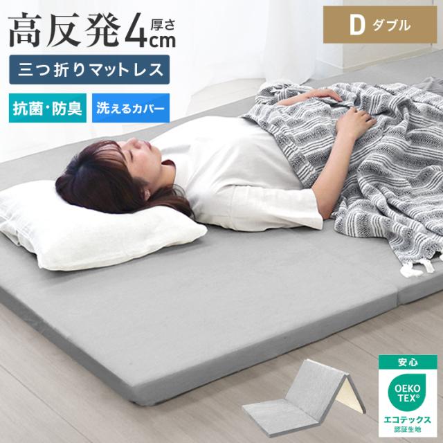 マットレストッパー ダブル 三つ折り 高反発 4cm 190N 25D トッパー 高品質 3つ折り 高反発マット 折り畳み マットレス マット ベッドマット ベッド 折りたたみ 布団 敷き布団 敷布団 防災 寝具 新生活 送料無料 WEIMALL