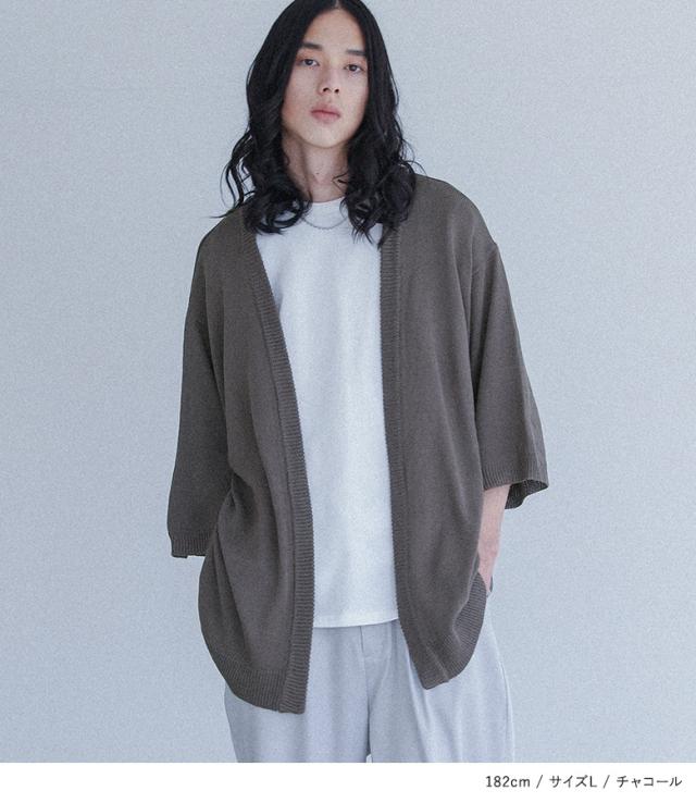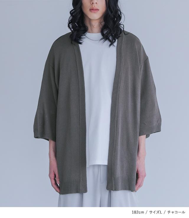 『MDRボタンレスニットカーディガン』【メール便不可】【30】[カーディガン メンズ トップス ニット 半袖 五分袖 七分袖 羽織 ニットカーディガン カーデ 冷房対策 着回し 薄手 春 夏 ロングシーズン]