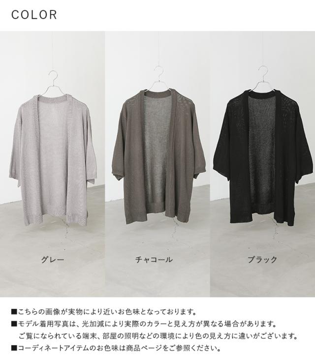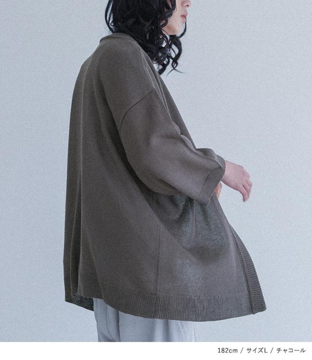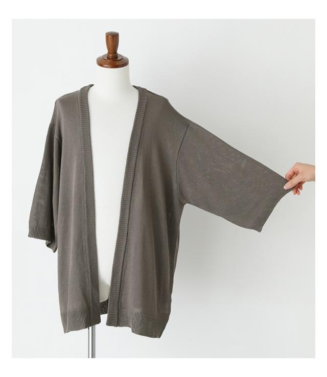 ■デザイン 前開きでサッと羽織れるボタンレスニットカーディガン。肘が隠れる袖丈で、大人でも着やすいサイズ感がポイントです。シンプルなデザインで着回し力も抜群。羽織りとしてはもちろん、オフィスでの冷房対策にもおすすめです。 ■コーディネート インにはシンプルなTシャツを合わせてカジュアルに。ボトムスはデニムやトラウザーパンツなど、様々なアイテムと相性抜群です。 ■素材 アクリル100%の薄手のニット。シャリ感のある夏らしい素材で、季節の変わり目から暑い時期まで、長い期間で使えます。 ■製品についての注意書き ニット製品につきまして。 ニット素材の持つ特性として編み上げる行程やプレス仕上げによって多少サイズや風合いの個体差が生じる場合がございます。 着用した時と実寸の長さが変わる可能性がございます。 また、着用の際ピリングが避けられず、完全に防止することはできません。毛玉取り器等で丁寧に取り除いてください。 ご了承の上、ご購入いただきますようお願いいたします。 |