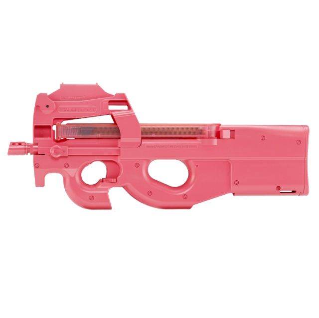 TVアニメ「ソードアート・オンライン オルタナティブ ガンゲイル・オンライン」で活躍する主人公レンの愛銃「ピーちゃん」ことピンクのP-90を、原作:時雨沢恵一氏・銃器設定協力:秋元こうじ氏の両名による監修のもと、最新のFET回路を搭載した電動ガンプラスシリーズ『P-90プラス』をベースにリアルな質感で再現した。