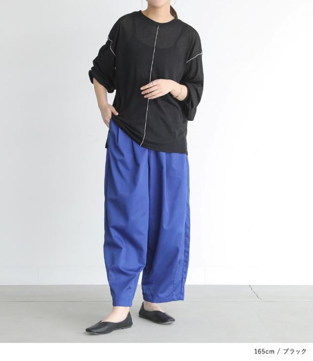 ■デザイン 程良いシアー生地で、ヘルシーな肌見せが出来るカットソー。シンプルながら配色メローが目を惹く1枚です。たっぷり身幅と長めの丈感で気になる部分を自然にカバーできるのも嬉しいポイント。 ■コーディネート 一枚で様になるトップスのため、シンプルなデニムやテーパードパンツと合わせていただくと、カジュアルながらも上品なスタイルが完成します。また、キャミワンピースやサロペットのインナーとして取り入れれば、お洒落なレイヤードコーディネートに。 ■素材 さらりとした肌触りのシアー素材を使用。薄手のため、暑い季節に活躍する一枚です。 |