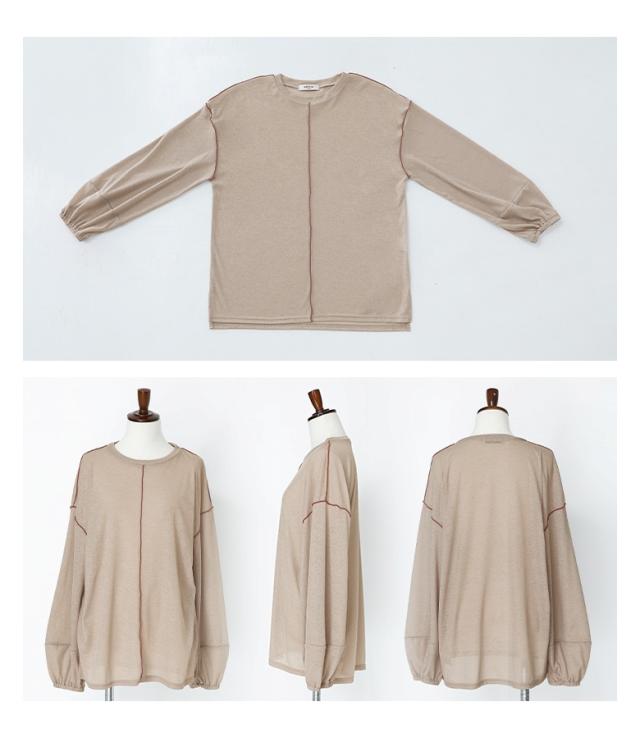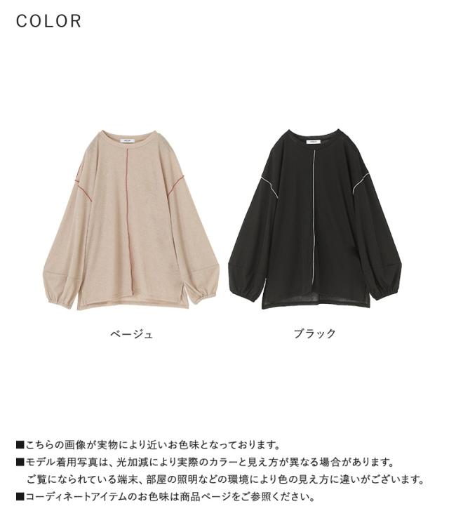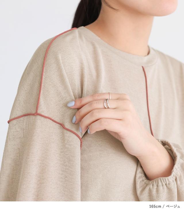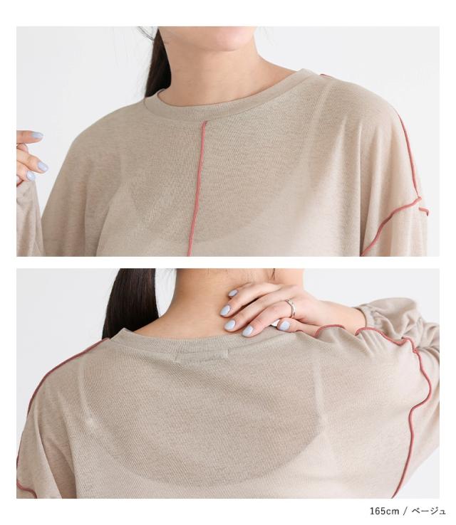 『ボリューム袖メローカットソー』※メール便可※【10】[カットソー レディース トップス 長袖 シアー 透け感 配色 メロー メロウ 春 夏 秋 オシャレウォーカー]