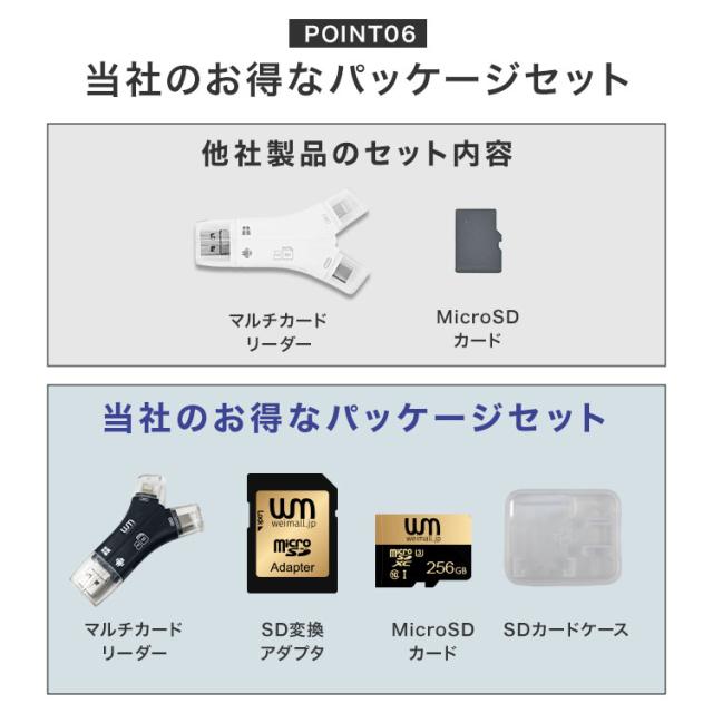 microSDカード(256GB)×1 SD変換アダプタ×1 SDカードケース×1 |