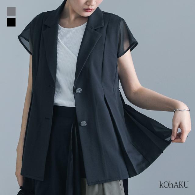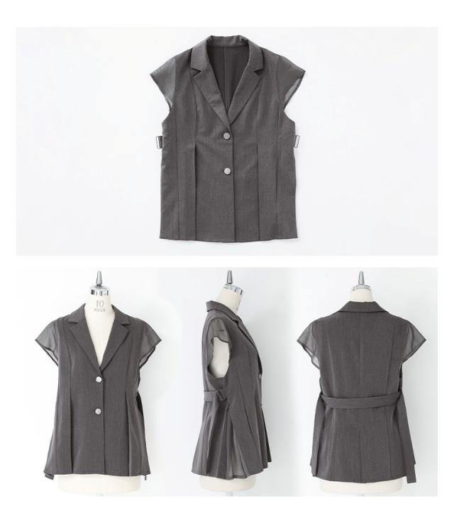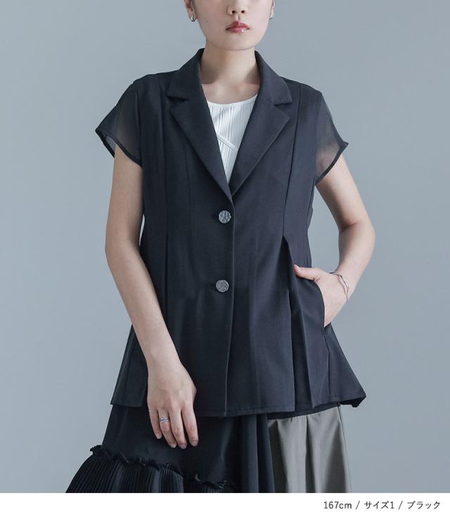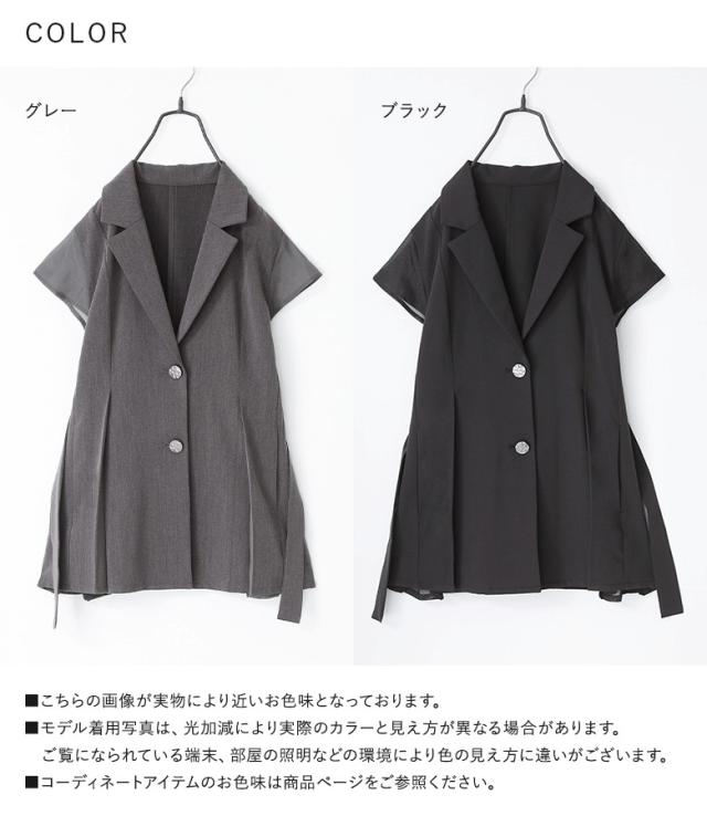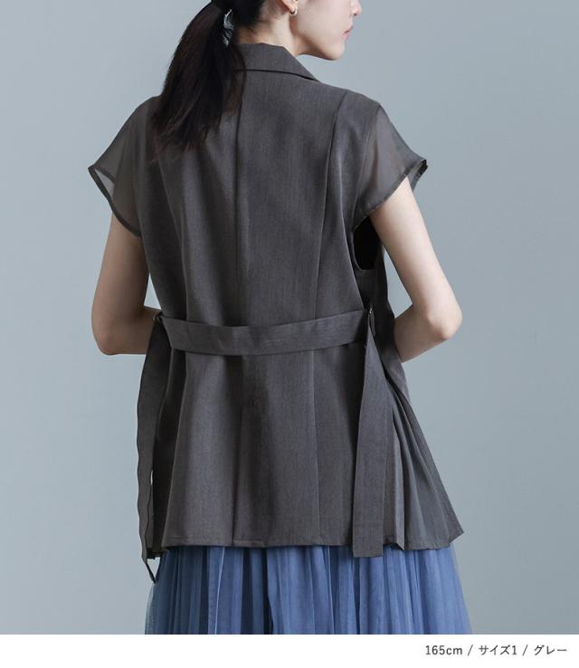ジレ レディース ライトアウター アウター ベスト シアー 切り替え テーラード ベルト付き 異素材 羽織 金属調ボタン モード 上品 春 秋 ロングシーズン オシャレウォーカー 【TP】 羽織り ノースリーブ フレンチスリーブ ショートスリーブ ショート丈 ミディ丈 ミドル丈 無地 透け感 レイヤード 重ね着 ポケット おうちで洗える 夏 カジュアル シンプル キレカジ セレカジ オフィス・ビジネス Sサイズ Mサイズ Lサイズ LLサイズ 3Lサイズ XLサイズ 10代 20代 30代 40代 50代 60代 低身長 高身長 女子会 オフィス 通勤 通学 お買い物 お出掛け 旅行 リゾート レジャー おしゃれ お洒落 トレンド 流行 パーティー 二次会 セレモニー 謝恩会 学校行事 ママ 母 母親 kOhAKU コハク 大人女子 大人可愛い お洒落可愛い 大人カジュアル ラフ スタイリッシュ 洗練 エッジィ きれいめ かっこいい osharewalker テーラードジレ 異素材シアー グレー ブラック 黒[ID]11on0js