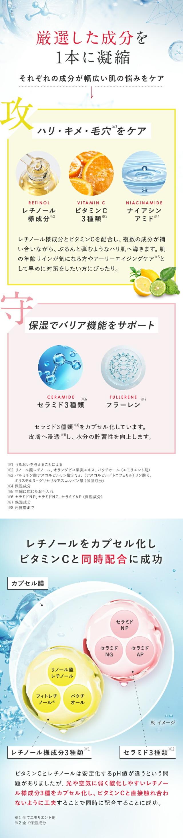 レチノール*1×ビタミンC*2でつやつや水光肌へ。