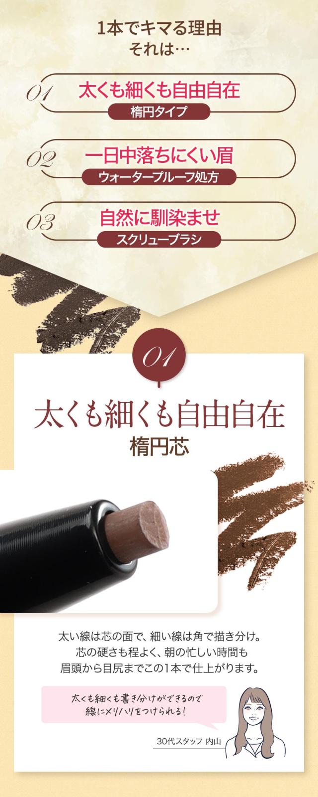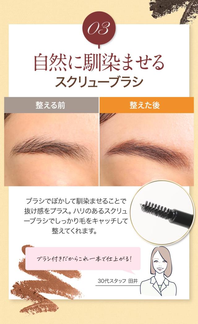 - アイブローペンシルの購入は初めてでしたが、撫でるように使え肌に負担がなさそうで良かったです。