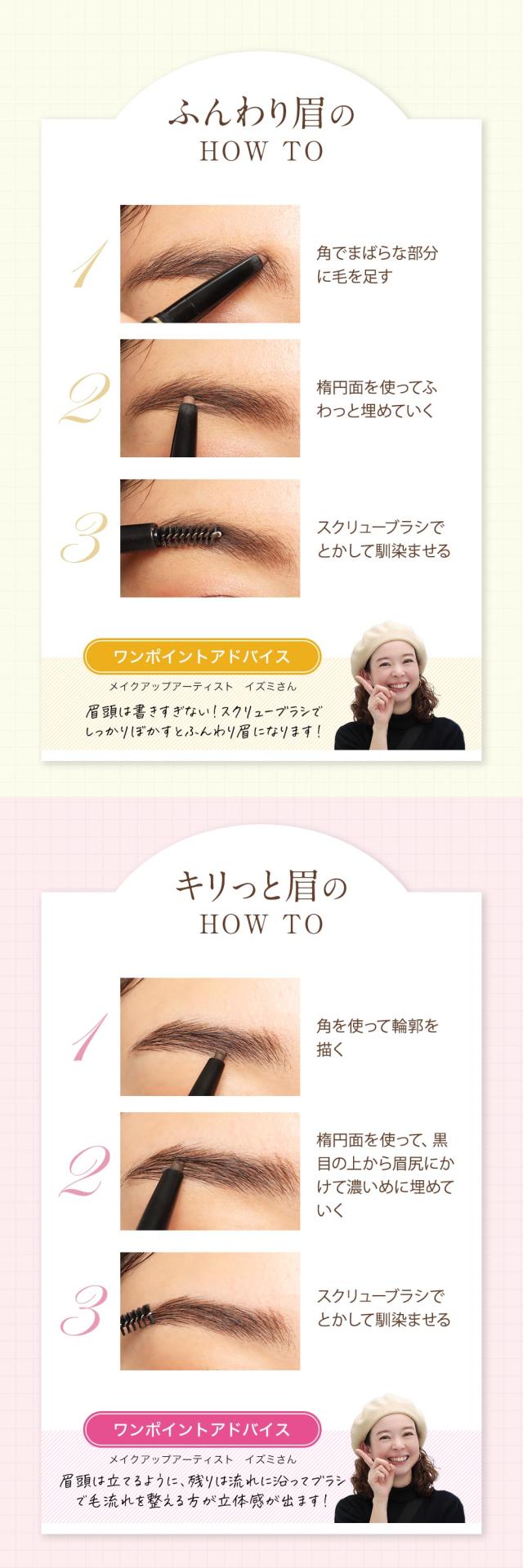 ブラシで眉を整えた後、お好みの形に眉を描いてください。