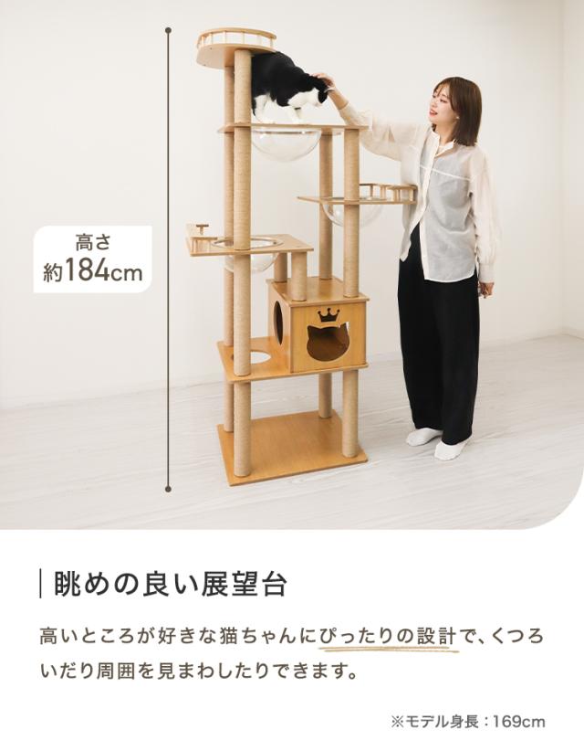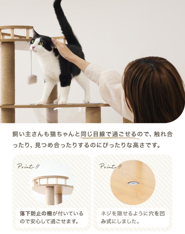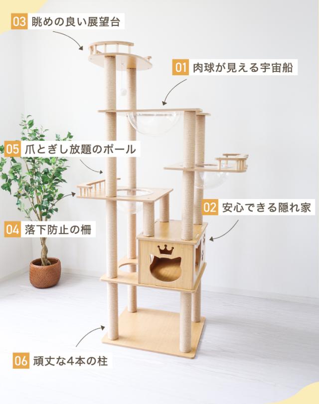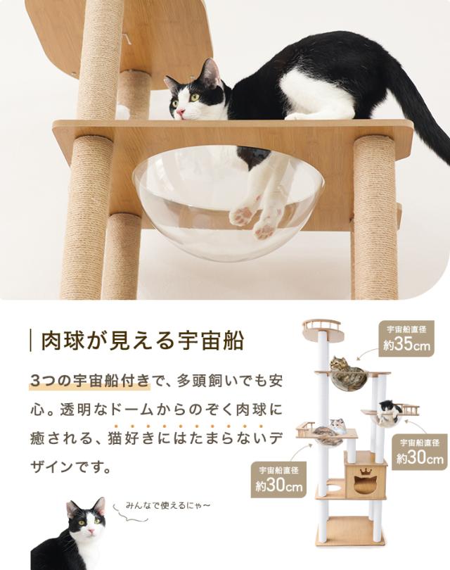≪新商品≫ キャットタワー 木製 宇宙船 据え置き 爪とぎ 天然麻 スリム 大型猫 安定 滑り止め 多頭飼い シニア おしゃれ 隠れ家 展望台 爪研ぎ 省スペース 猫 運動不足解消 クリアボウル 安全 頑丈 送料無料