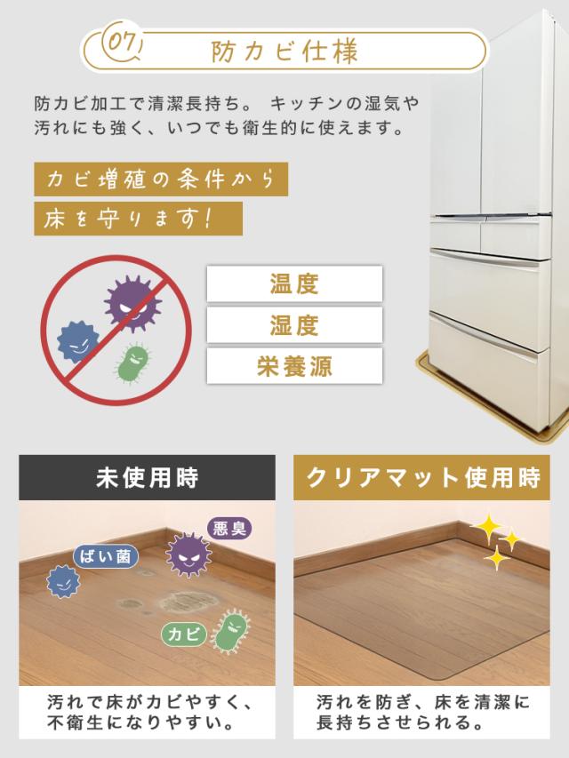 冷蔵庫 マット 防カビ 70×70cm ポリカーボネート キズ 防止 XM サイズ 透明 硬質 クリアタイプ キズ防止 傷防止 床 傷 保護 へこみ 予防 冷蔵庫・冷凍庫用アクセサリー 冷蔵庫用マット 送料無料