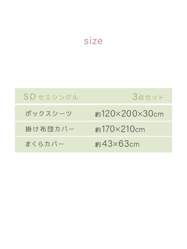 シーツ:120x200x30cm 掛け布団カバー:170×210cm 枕カバー:43×63cm |