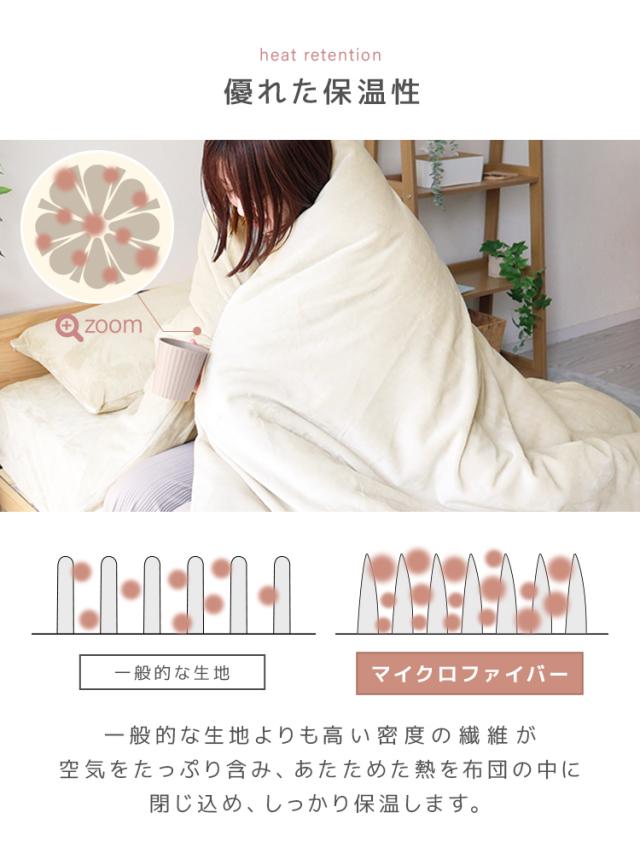 やわらかくなめらかな肌ざわりのマイクロファイバー素材を使用し、布団に入った瞬間から優しいぬくもりに包まれます。