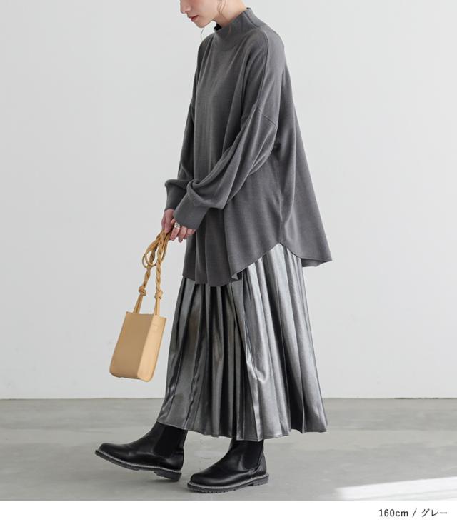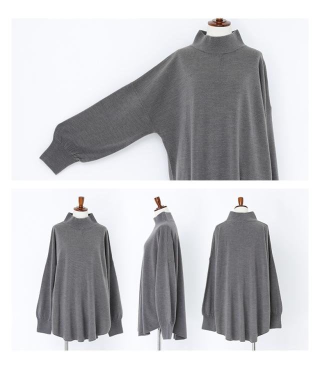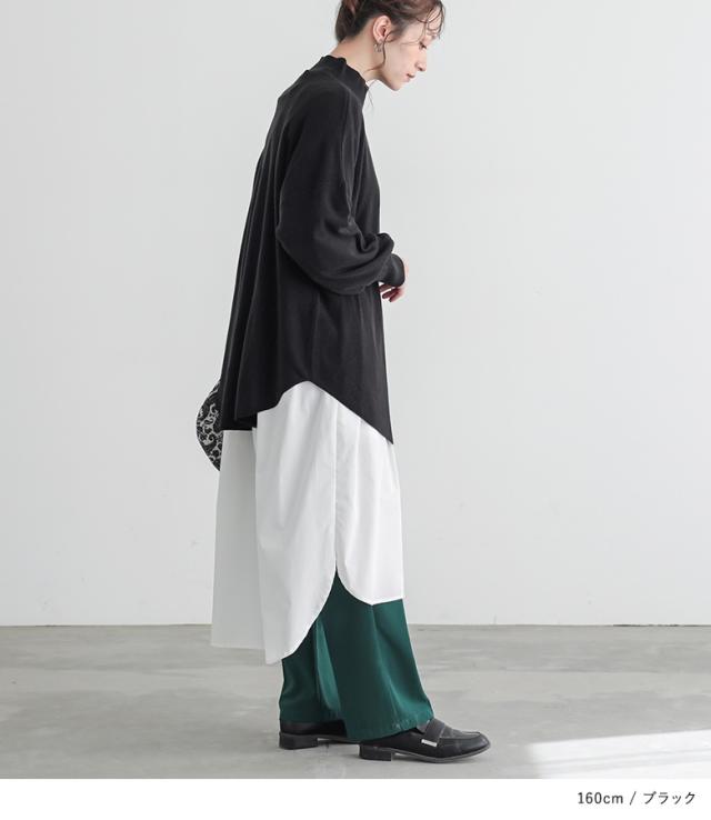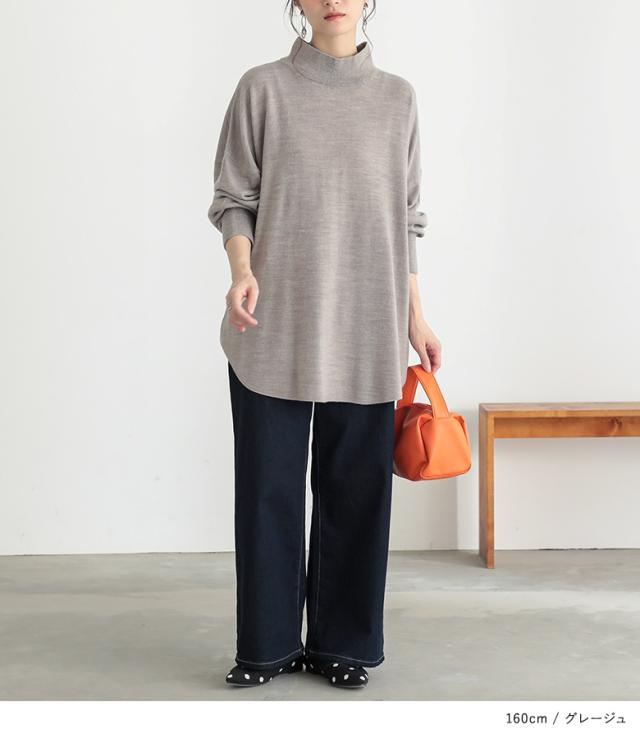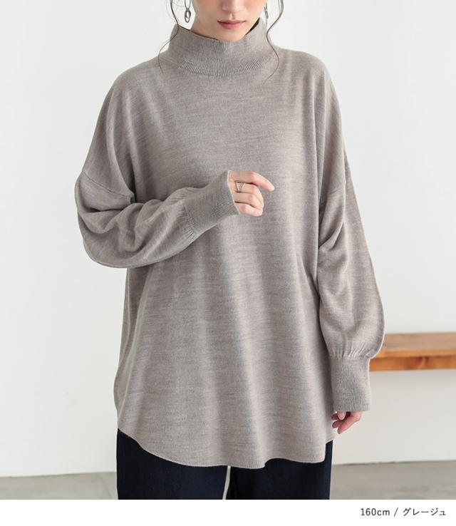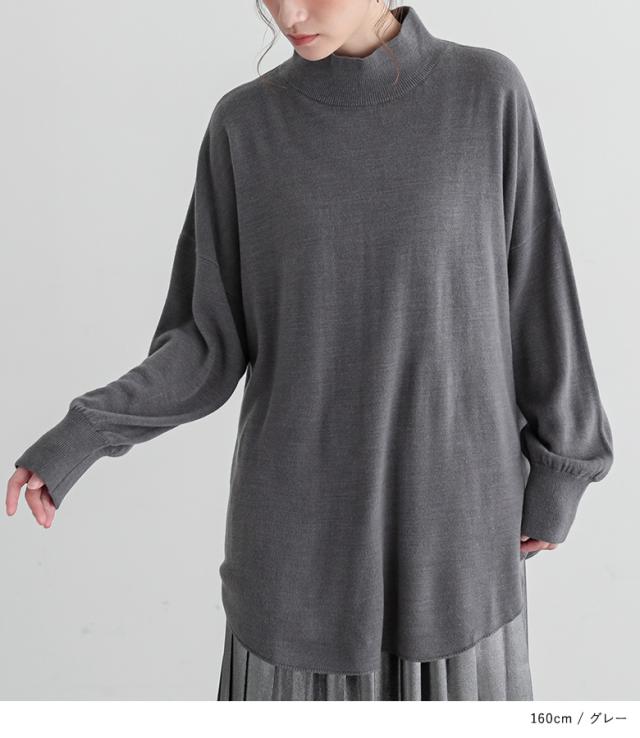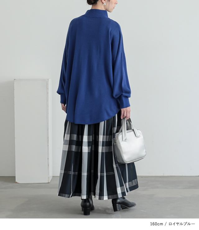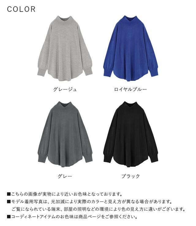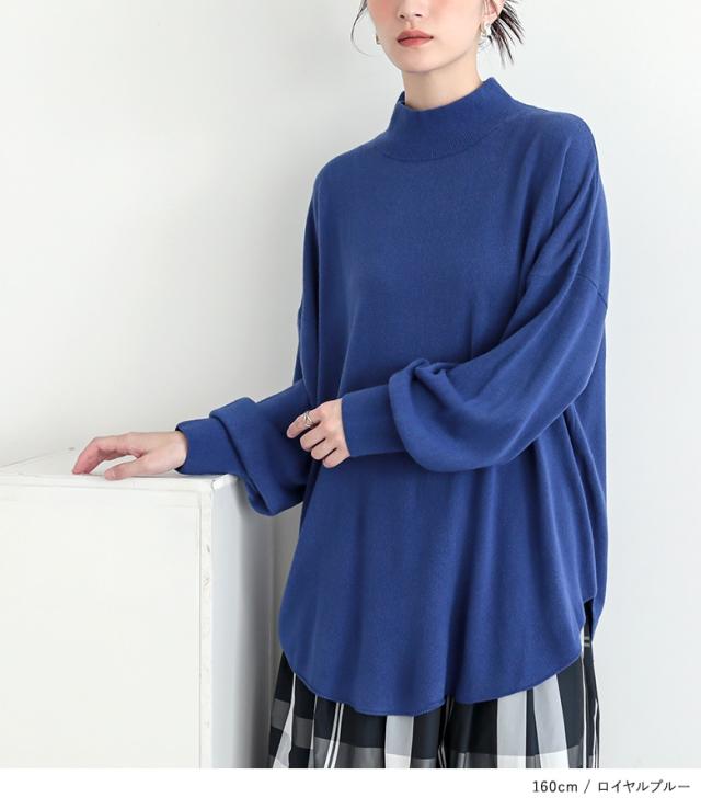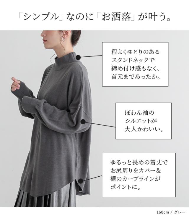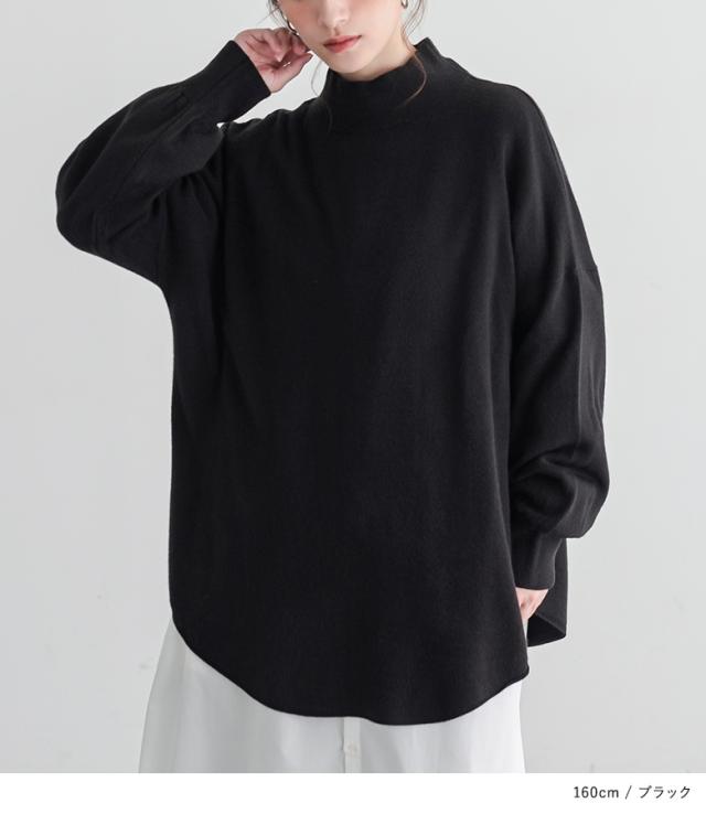 <冬新作>『裾ラウンドスタンドネックニット』【メール便不可】【20】[ニット レディース トップス セーター 長袖 スタンドネック ぽわん袖 帯電防止 タンブル乾燥可 おうちで洗える ゆったり 秋 冬]