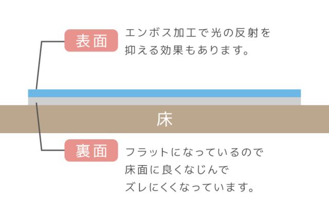 ・ゴム製品やゴム脚が付いた物を置くと、跡がつく場合があります。 ・直射日光、温度、湿度によっては、製品の変色、伸縮、反り返りが発生することがあります。 ・筒状に巻いた状態でのお届けとなります。室温20〜25℃で広げていただきますと、巻きグセは1日ほどでとることができます。なかなか巻きグセが取れない場合には、逆方向に巻いていただくと巻きグセがとれやすくなります。 ・お手入れは薄めた中性洗剤を湿らした布につけ、固く絞って拭いた後、水分が残らないように乾いた布で乾拭きしてください。 ・日の当たる所で使用しないでください。日焼けで硬化する場合があります。 ・仕様・デザインは改良のため予告なく変更することがあります。 |